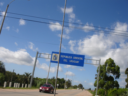 Logo que passamos a placa na rodovia informando que estavamos no Uruguay, enfrentamos nossa primeira aduana, o processo foi bem tranquilo, paramos o carro em um pequeno estacionamento, e nos dirigimos a sala de imigração, solicitaram nossos documentos, o documento do carro e o seguro carta-verde. Após esse processo o veículo é vistoriado (vistoria bem rápida, apenas olham o que estão levando, os guardas nem perguntaram sobre o galão de 20L de gasolina que eu levo na caçamba!), fomos liberados e seguimos viagem.
