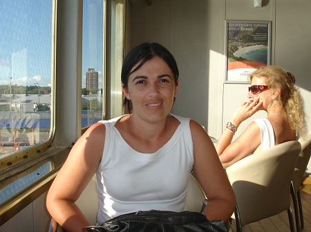 O BUQUEBUS não é uma balsa comum (é um navio de 4 andares para transporte de passageiros e carros), é um navio com freeshop, restaurante e toda uma estrutura para que você possa realizar uma travessia com conforto. A Dani até assistiu um show de tango no andar principal do navio.