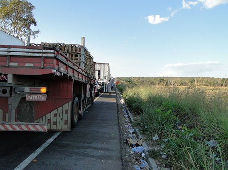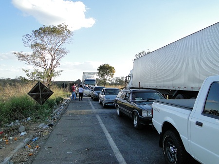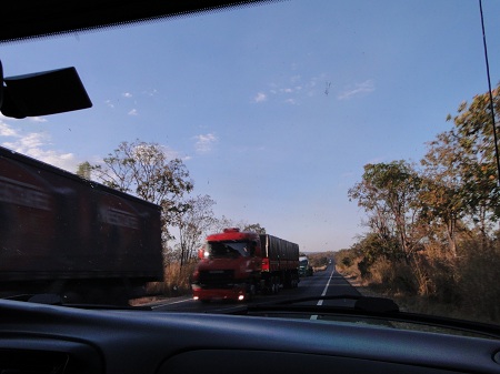 Estávamos preocupados com as condições da estrada, mas até agora todos os trechos percorridos estão razoavelmente em bom estado. O problema é que os caminhoneiros que transitam pelas estradas de Minas Gerias são muito piores do que os que transitam no Sul do país, ele realizam ultrapassagens em pistas simples e te obrigam a jogar o carro no acostamento para não bater de frente com eles, creio que por esse motivo existam tantos acidentes fatais nas estradas dessa região. Fica a dica, sempre que possível circule pela faixa adicional, pois eles se aproveitam desses trechos para realizar as ultrapassagens em locais proíbidos.
