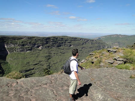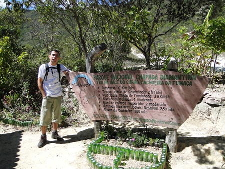 A distância entre a cachoeira da fumaça e Lençois, BA é de aproximadamente 20KM. O horário de visitação é das 8h às 13h. É aconselhável a contratação de um guia (R$ 80,00 para um grupo de até 4 pessoas), mas resolvemos fazer a trilha sozinhos. Fica um alerta no trecho plano da trilha é super fácil se perder (na verdade a gente se perdeu), mas a Dani resolveu brincar de João e Maria e começou a marcar a trilha com setas para voltarmos no mesmo caminho. Andamos uns 15 minutos e começamos a perceber que a trilha estava ficando sem as marcas de fluxo de pessoas, resolvemos voltar. Conseguimos localizar um guia que estava voltando da cachoeira, aproveitamos para pedir informações e seguimos a trilha certo, porém com a Dani desenhando as setas para voltarmos.