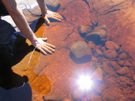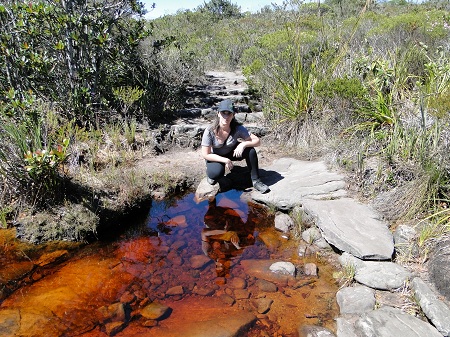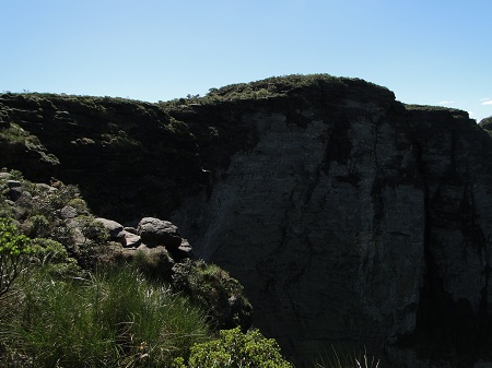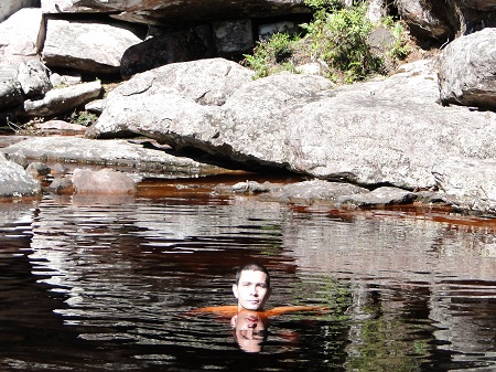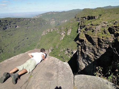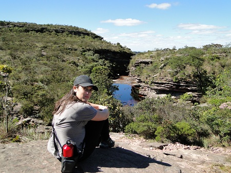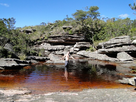 Chegamos no final da trilha e como já era de esperar o volume de água era bem pequeno, mal conseguiamos ver a queda d'agua. Valeu o esforço e a caminhada pela trilha, o lugar é muito mágico e único. Antes de pegar a trilha de volta, resolvi tomar um banho em um dos poços que existem antes da queda d'agua, afinal tinha mais 6KM de caminhada debaixo de sol.