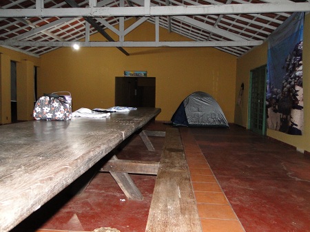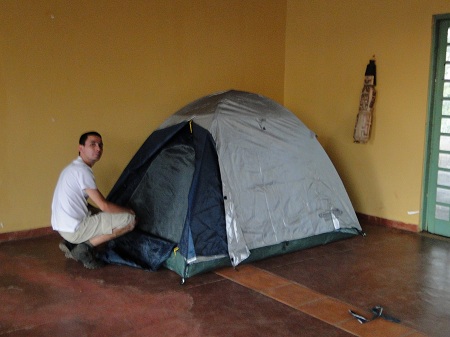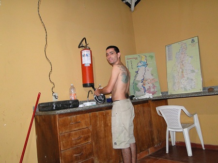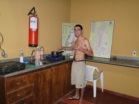 Voltamos da cachoeira e ficamos batendo um papo com o pessoal da ADETUR e torcendo para algum louco chegar ali para acampar junto com a gente, mas isso não ocorreu... montamos acampamento sozinhos. O local era um pouco estranho, pois ali antigamente funcionava uma pousada, mas o governo transformou a fazenda em um parque e a pousada foi desativada, o lugar era muito sombrio! A aventura foi boa... banho estilo "A Fazenda", morcegos voando no telhado do lugar, os mais diversos barulhos de bichos na mata... e tudo mais o que se pode esperar por acampar no meio do Jalapão. Nossa unica companheira foi a "Bellinha" uma cachorrinha que logo nos foi levada de lá, pois tinham esquecido ela.