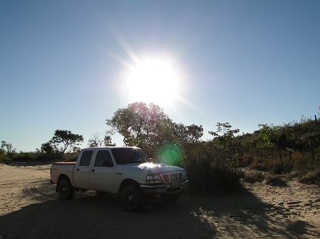 No meio do caminho encontramos o Saud, o Carlos e o Roque do fórum 4x4brasil, conversamos rapidamente e pedimos dicas para hospedagem, eles indicaram a pousada Veredas Tropical, seguimos direto para lá e conseguimos o único quarto vago. A proprietária é a dona Bibi, uma senhora muito educada e gente boa!