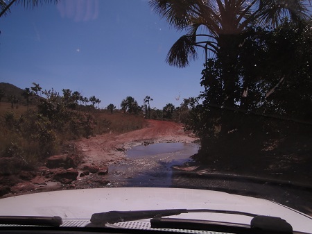 Levantamos um pouco tarde, às 8h e após o café arrumamos a bagunça do quarto e saímos da pousada às 11h em direção ao povoado Moinho do Engenho II, esse povoado fica a 27KM de Cavalcante, GO, pegamos a estrada e seguimos para lá. Para acesso às cachoeiras Santa Bárbara e Capivara é necessário pagarmos uma taxa de R$ 10,00 por pessoa e a contratação de um guia local no valor de R$ 50,00. A contratação do guia é obrigatório, demos preferência para um guia da comunidade, assim geramos um pouco de renda no local.