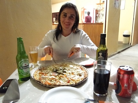 Voltamos das cachoeiras e resolvemos jantar pizza. Nos indicaram a Pizzaria Dona Benta, excelente pizza no forno à lenha... que saudade.