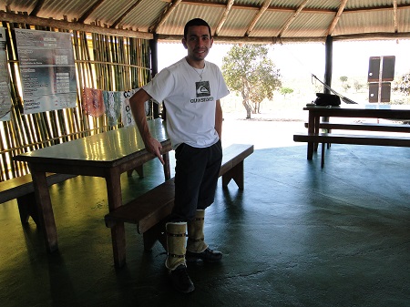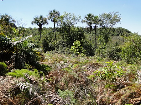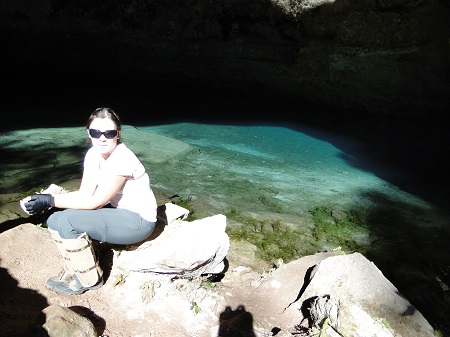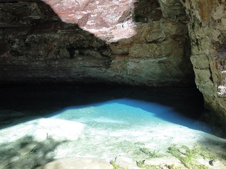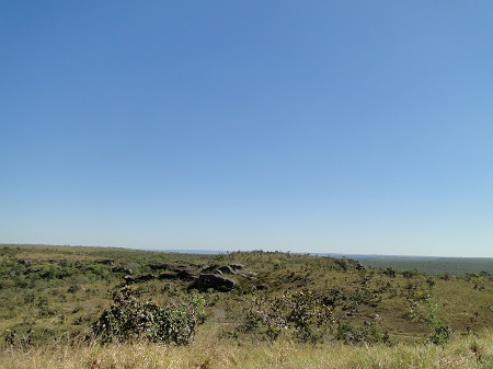 Acordamos cedo, tomamos um belo café da manhã, conversamos com a nossa guia e seguimos rumo à entrada da trilha das cavernas. Tanto as cavernas como a Lagoa Azul ficam numa propriedade particular, distante 40KM do centro da cidade da Chapada dos Guimarães, MT e é necessário pagar uma taxa de R$ 30,00 por pessoa para visitação. Além disso é obrigatório o acompanhamento e monitoramento de um guia durante toda caminhada e o uso de perneiras para proteger as pernas de picadas de cobras.