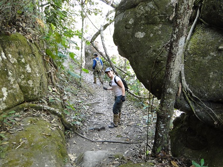 A trilha possuí um nível de dificuldade leve e seu percurso de ida e volta é de 12KM, sendo que o único requisito é respeitar a natureza. Os principais atrativos da trilha são: A ponte de pedra, a pedra do equilíbrio, os dois acesso da caverna Aroe Jari (primeiro a boca de saída e depois a boca de entrada), a lagoa azul (é interessante chegar na lagoa azul até às 14h, horário em que o sol tem o melhor posicionamento para iluminação da lagoa) e por último a travessia da caverna Kiodo Brado.