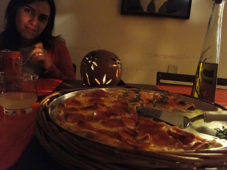 Voltamos para à pousada com nossa energia mental completamente renovada e fomos logo cuidar da energia do corpo... e como ninguém é de ferro, hoje optamos por jantar Pizza, para não perder o nosso hábito de sábado de noite em Sampa. Na cidade da Chapada dos Guimarães, MT existem uma pizzaria chamada Margherita, fica próximo a praça da igreja, pizza muito boa com massa fina e leve, há tempo não comíamos uma pizza tão leve e gostosa.