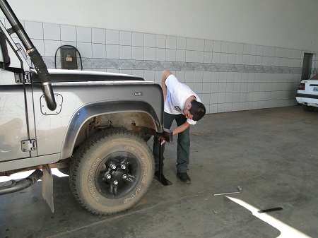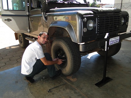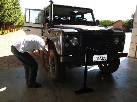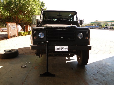 Pra ajudar mais um pouco, ao sairmos do almoço, aproveitamos que estávamos parados em um posto de gasolina e resolvemos calibrar os pneus. Assim que terminamos de calibrar, do nada o bico de calibragem do pneu dianteiro estourou, vazando todo o ar do pneu. Lá vamos nós trocar o pneu pelo estepe, o dia que já começou atrasado ganha mais uns 30 minutos de atraso.