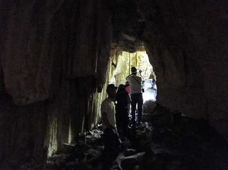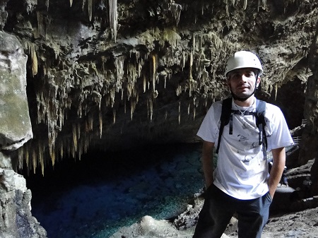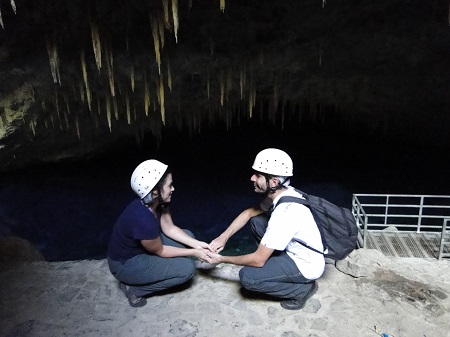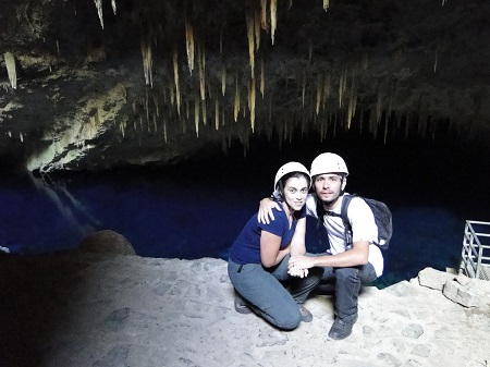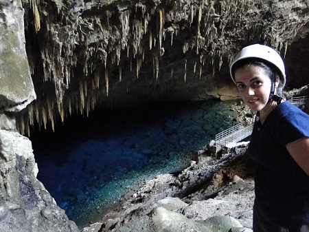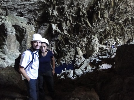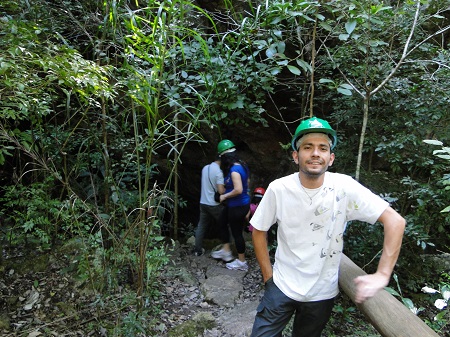 Iniciamos uma trilha de aproximadamente 300m e já avistamos a entrada da gruta, já começamos a nos impressionar com o tamanho da boca de entrada. Assim que se chega na boca da gruta inicia-se uma trilha por degraus de pedra para descer até o lago, como a descida é bem lenta e com paradas, você quase não sente a trilha. Quando iniciamos a trilha pensamos que não seria possível visualizar a água azul, mas quando começamos a nos aproximar a visão foi se adaptando ao ambiente e começamos a enxergar a tonalidade azul da água, realmente é muito bonito.