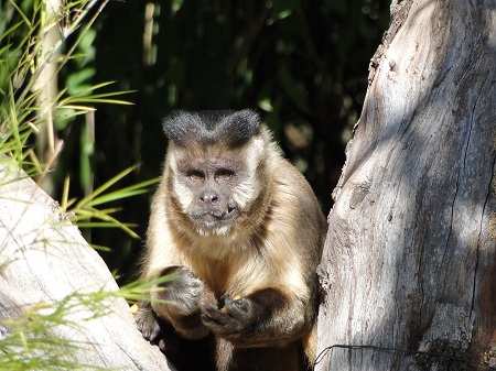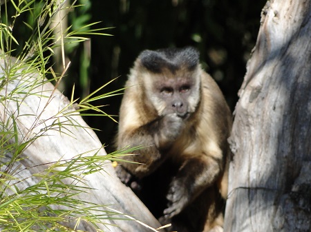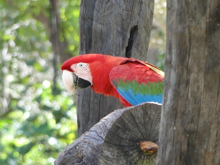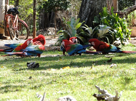 Depois que deixamos a Gruta São Miguel, ficamos um tempo na recepção do local e notamos algumas araras vermelhas em uma árvore, para nossa surpresa o Luciano (rapaz que fica na recepção da fazenda) jogou um pouco de sementes em um local aonde elas costumavam almoçar, e todas resolveram descer da árvore para comer, era o único tipo de arara que ainda não tinhamos fotografado.