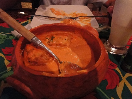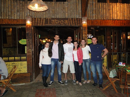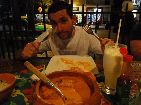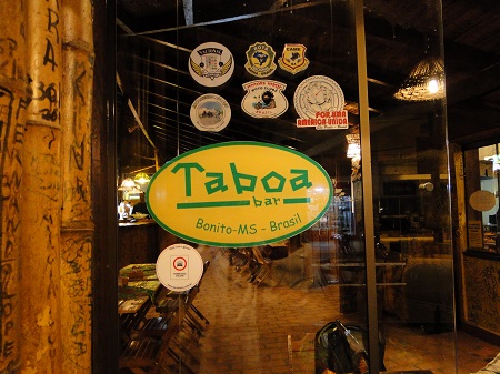 Pedimos o prato, um pintado no molho de urucum, mais um prato para o nosso cardápio de indicações. Um pouco antes do prato chegar encontramos um casal que fizemos amizade na Gruta do Lago Azul, eram o Bruno e Lilia, eles estavam com mais um casal, o Márcio e a Gabriela (que no final descobrimos que não eram um casal, mas dois irmãos viajando juntos), juntamos nossas mesas e começamos um bate papo de viagens, destinos, indicações e tudo mais.