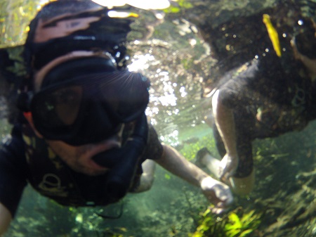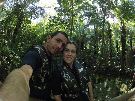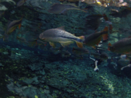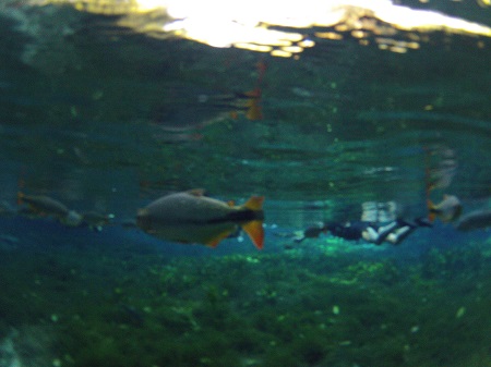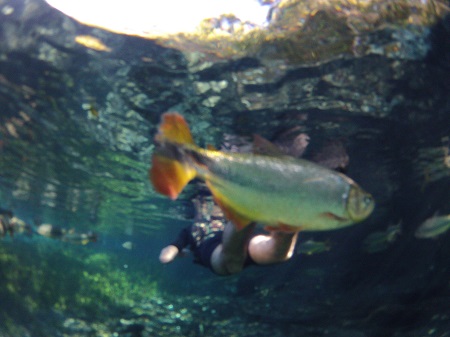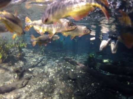 Almoçamos... barriga cheia e lá vamos nós para o último atrativo de Bonito, MS, o aquário natural. Realmente o lugar é fascinante, é extamente como a propaganda mostra, águas cristalinas com uma diversidade enorme de peixes nadando o tempo todo junto com a gente. No final da flutuação ainda temos o direito de queimar uma adrenalina com uma pequena tirolesa com queda no rio.