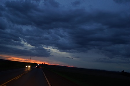 Tínhamos planejado sair de São Paulo, SP às 05h, mas como fomos dormir à 1h da manhã, perdemos totalmente a hora e saímos às 07h. Pagamos caro por esse atraso, pois tívemos que rodar aproximadamente 280KM de noite.