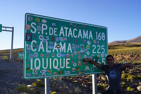 Estavamos um pouco precupados com o horário, pois deixamos Tilcara, ARG tarde, e o GPS apontava que chegaríamos em San Pedro de Atacama às 18h30min, mas nessa projeção não estavam inclusos os tramites aduaneiros para deixarmos a Argentina e entrarmos finalmente no Chile, demos muita sorte e a aduana estava completamente vazia e gastamos apenas 40min para resolver tudo, incluindo a vistoria de bagagem do veículo que foi a mais criteriosa que já enfrentamos até hoje... eles olham tudo!