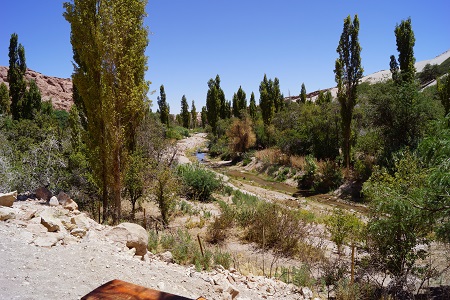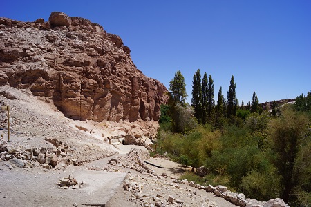 Deixamos a Laguna Chaxa e fomos direto ao Valle de Jere, esse lugar é um verdadeiro oásis no deserto, pois ao seu redor não existe nada, e no meio daquele vale existe muita água, além de diversas árvores, incluíndo árvores frutíferas da região, para acesso ao parque é cobrada uma taxa de 2.000 pesos por pessoa.