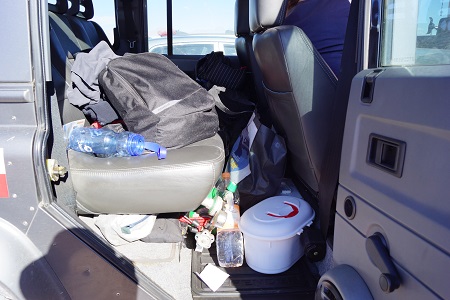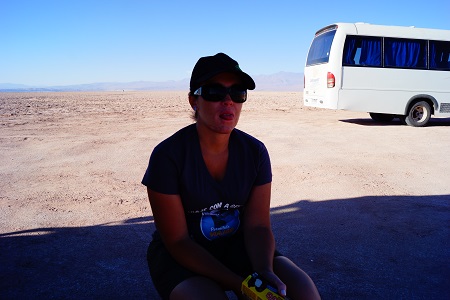 Saindo da Laguna Cejar, pedimos informações para conhecer outra laguna, a Trebinquiche. No caminho para a laguna Trebinquiche encontramos também os Ojos del Salar, são dois buracos cheios de água, porém aqui a quantidade de sal na água não é tão grande e é possível afundar normalmente. Eu aproveite para dar um mergulho e me refrescar do calor do deserto mais uma vez, não é cobrado nenhum tipo de taxa para entrar no Ojo del Salar.