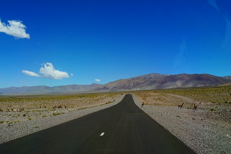 Pouco mais de 1h que passamos na aduana chilena, chegamos no passo fronteiriço com a Argentina, é incrível, bem na divisa com a Argentina o asfalto começa. Depois de poucos quilômetros chegamos na aduana Argentina e fizemos todos os trâmites de entrada no país. Foi ai que ganhamos a melhor surpresa do dia... a Ruta Nacional 60... que paisagens são essas, que liberadade de animais são esses??? Quando passamos a fronteria não foi apenas a qualidade da rodovia que mudou... mudou completamente o cenário! Durante a travessia, assim como no Paso Jama não sentimos nenhum sintoma relativo a altitude... foi como subir e descer a serra do mar no mesmo dia!