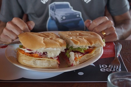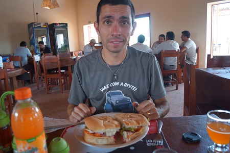 Mapeamos o GPS para o Parque Nacional Talampaya e pé na estrada. Após uns 30KM voltamos a transitar pela Ruta 40, tínhamos apenas uns 70KM para enfim chegarmos na estrada do parque. Rodamos uns 35KM na Ruta 40 e começamos a notar um estreitamento de pista fora do normal e diversas placas de obras, como a Argentina é um eterno canteiro de obras nas estradas, achamos normal e continuamos na ruta, até que chegamos em um ponto em que a rodovia estava fechada com cones e cavaletes. Tinha um espaço de passagem entre dois cones, e resolvemos passar, após uns 3 minutos da passagem, uma picape passou e piscou farol, quando paramos recebemos a bela notícia de que a Ruta estava fechada e que só abriria daqui 20 dias. Resumo da história é que tivemos que voltar aproximadamente 40KM e pegar um desvio no qual rodamos 200KM a mais do que esperado. Tudo isso ainda reflexo da mudança na travessia da cordilheira pelo Paso de San Fransico. O problema é que ao invés de chegarmos ás 11h30min no Parque Nacional Talampaya, chegamos às 13h30min.