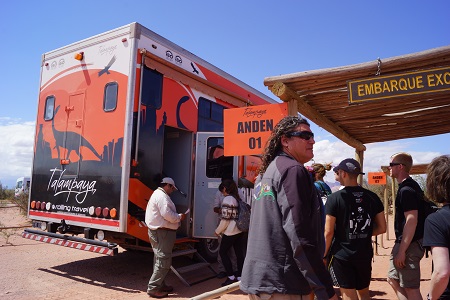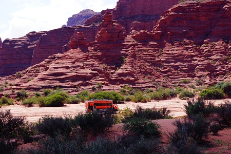 Assim que chegamos o parque fomos nos informar como funcionava a sua visitação, e descobrimos que é proíbido a entrada de veículos não autorizados no parque, com isso não poderiamos tirar foto da Defender junto aos cânions. É cobrado uma taxa de 50 pesos argetinos por pessoa + 235 pesos argentinos para o transporte através dos cânions utilizando um caminhão 4x4. Esse foi um dos parques mais caros que já visitamos na Argentina, equiparou-se ao mini trekking que fizemos no glaciar Perito Moreno em 2010.