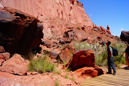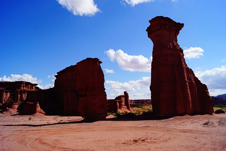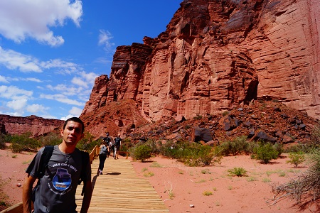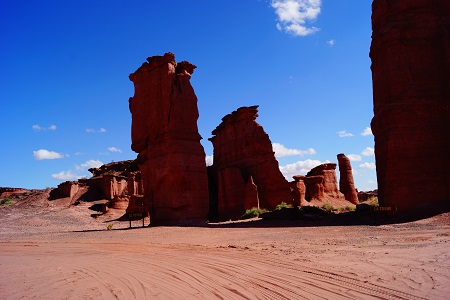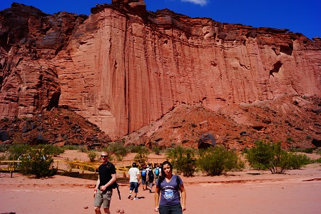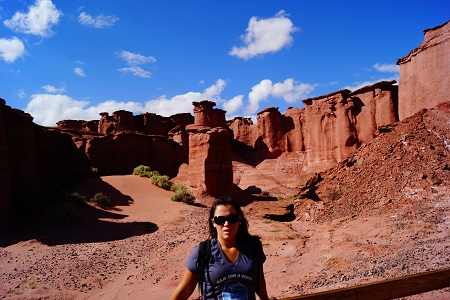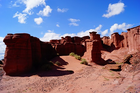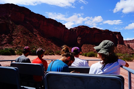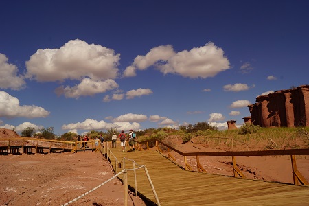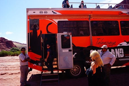 O Parque Nacional Talampaya tem formações e paisagens únicas, sua formação ocorreu muito antes do choque que originou a Cordilheira dos Andes, o guia passa a informação que é da era jurassíca, além disso o parque serviu de inspiração para o filme Carros da Disney, acreditamos que esse foi o motivo das altas taxas de visitação, no nosso grupo não existia nenhum turista argentino, além do fato de servirem um lanche dentro dos cânions com petiscos, azeitonas, sucos e vinhos a vontade. O trajeto do parque dura entre 2h30min até 3h, isso vai variar com o tamanho do grupo e o tipo de transporte escolhido, VAN ou caminhão. No nosso caso escolhemos o caminhão por ser a opção que encaixava no tempo que tínhamos para visitação, nossa visitação iniciou às 14h30min e terminou às 17h30min.