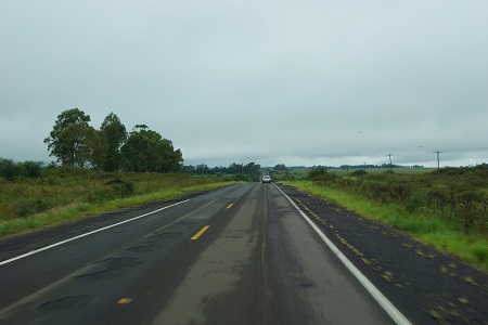 Deixamos o hotel em Uruguaiana, RS às 09h e chegamos em Gramado, RS às 20h, foram 11h para percorrer menos de 800KM. Podemos dizer até que fomos literalmente assaltados nas estradas, pois em quase todas pagamos pedágio, é um absurdo pagar pedágio para transitar em rodovias de pistas simples, sem acostamento e com muitos buracos, além disso as cabines de pedágio do sem parar aqui da região aceitam pagamento em dinheiro, assim o sistema não é sem parar, pois paramos em todos os pedágios esperando o pessoal da frente pagar.