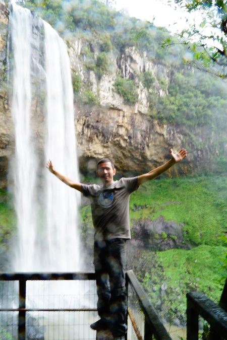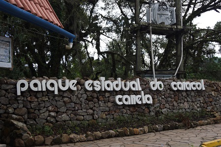 Aproveitamos para descansar um pouco mais e acordamos mais tarde, saímos da pousada às 10h30min rumo ao Parque Estadual do Caracol, a distância entre Gramado, RS e Canela, RS é de aproximadamente 7KM e até a entrada do parque é de 13KM. Assim que saímos da pousada, começou uma neblina muito intensa nas ruas, estávamos dentro das nuvens, mesmo assim fomos arriscar de visitar o parque e conhecer a Cascata do Caracol. Com muita sorte ao chegarmos no parque o tempo começou a abrir e durante todo o tempo que ficamos lá o tempo permaneceu aberto. Conseguimos fotografar a Cascata do Caracol tanto no mirante como em sua base, após descer 730 degraus (imaginem pra subir tudo de novo).